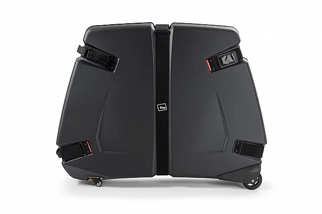 B and W's International Bike Box II fits road bikes sizes 62cm and smaller. The top shell removes completely for easy packing. Inside, a size-adjustable anchored mount with straps, as well as two wheel guards, 3 layers of foam, chain protection, and more foam for handlebar and chain ring protection, keep the bike steady and protected. Four wheels on the bottom and multiple handles enable easy rolling. This bike box is lockable with a TSA padlock (not included) for total peace of mind.