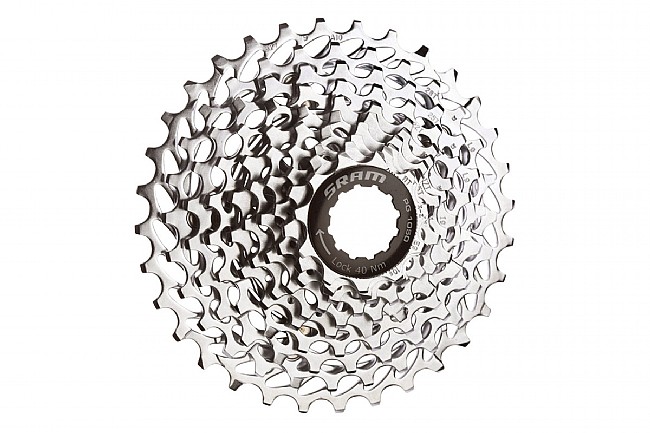 The PG-1050 cassette is the heart of SRAM's Apex group with its wider gear range. The Apex group itself is part of SRAM's WiFli (Wider, Faster, Lighter) road system where they feel a double crank with a wider cassette range will have the gear range of a triple crank but be lighter and have less gear redundancies. The largest cogs are attached with an aluminum spider for a stiffer and lighter cassette. Constructed of nickel plated steel for long life. Powerglide ramps and teeth ensure smooth shifting. 303 grams (11-32).