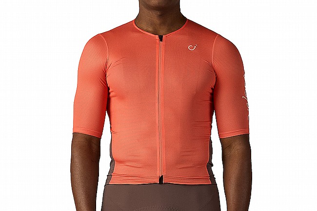 A single piece of ultralight grid fabric is used across the chest, shoulders, and upper back, fully wrapping all leading panels with only one seam between the shoulder blades. A half-seam, called a dart, is used to create the shoulder shape. The result is less stitching and more aerodynamic than ever.