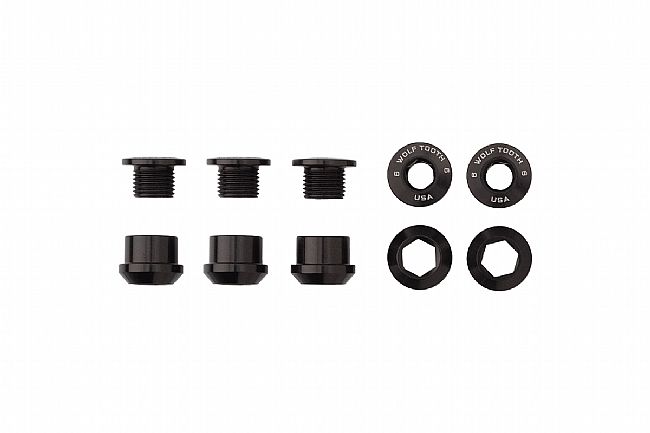 The Wolf Tooth Components Alloy Chainring Bolts are designed to be the best bolts that money can buy. Featuring a lightweight and durable 7075-T6 aluminum construction, Wolf Tooth ingeniously designed the Bolts with a 4mm hex, and the Nuts with a 6mm hex making install and removal easier than ever.